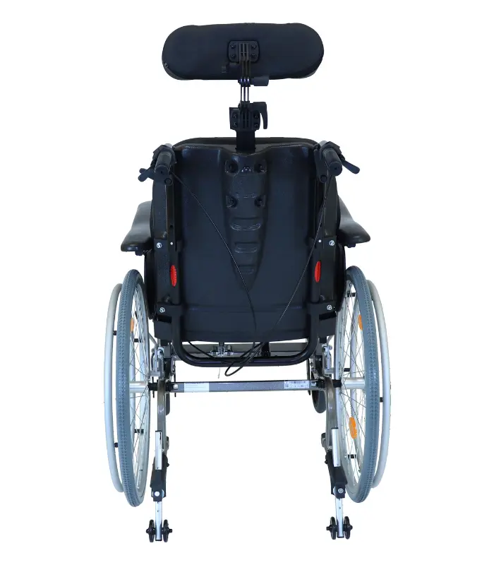 Anti-tip supports (height-adjustable) and headrest (adjustable in height and angle) as standard